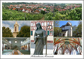 - der Straße folgen bis zum Dorfplatz (Brunnen mit Bronzefigur „Heilige Lioba“)