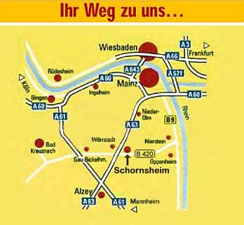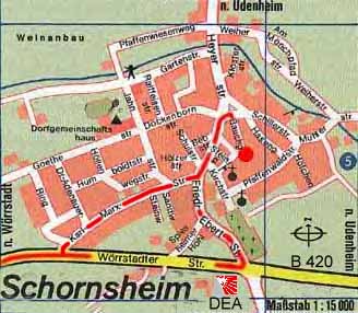 - nach ca. 1 km (die erste Einfahrt nach Schornsheim nehmen,